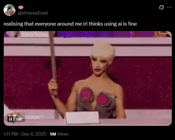 Clearly, this tweet struck a chord. But then you look across communities such as Bluesky, Reddit, and TikTok and there’s plenty of AI hatred out there. Now, I’m usually fairly skeptical of “fad hatreds.” Extremely Online People (EOP) love nothing more than fabricating “problematic narratives” and finding something to cancel. In my eyes, it’s very much a crab mentality of “no one can have fun/nice things.”